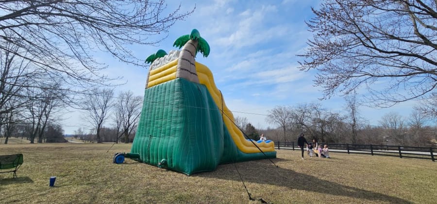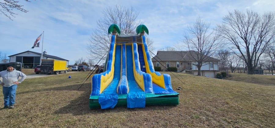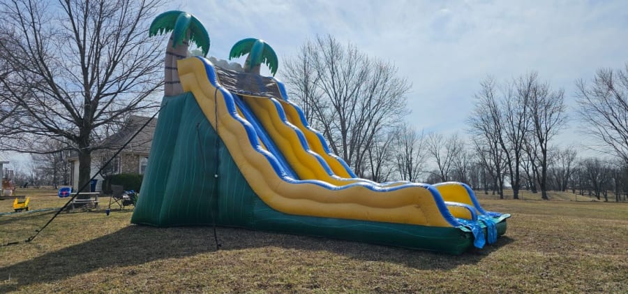 Beat the heat with our 20’ Tropical Wave dual-lane water slide. Two lanes keep the line moving while the full splash pool delivers a big finish. We deliver, set up, and secure everything for safe fun at birthdays, block parties, church festivals, and school events across the Kansas City area.