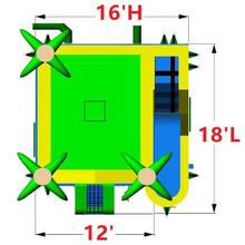 POWER REQUIREMENTS – This inflatable has one, 1.5 Horse Power blower and requires 1 dedicated outlet/circuit to operate. Equipment must be located no further than 100 feet from an exterior outlet or generator. MAXIMUM OF ONE 100 foot extension cord per blower – Coba’s Creations provides the extension cord upon set up.