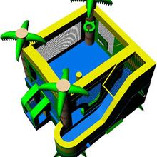 It has a large bounce house area as well as open staircase leading to a slide that has the option of being used with water or not. There is a basketball hoop as well as two pop ups in the bounce area. One of the things I really like about this unit is that it allows the kids to go straight from the slide back to the bounce area without tracking in additional yard debris. Approx. Dimensions:18X16X14 - Approx weight is 285 lbs. Maximum Capacity is 800 lbs or 200 l bs per player. There is a drain on the side of the slide, so we recommend putting a tarp under that section to prevent the yard from getting excessively muddy..