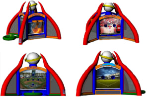 Four games in one! This interactive features basketball, baseball, football, and soccer. It’s a hit for school carnivals, church festivals, company picnics, and birthdays. We include at least two balls for each sport for the day’s use so lines keep moving and everyone gets a turn.