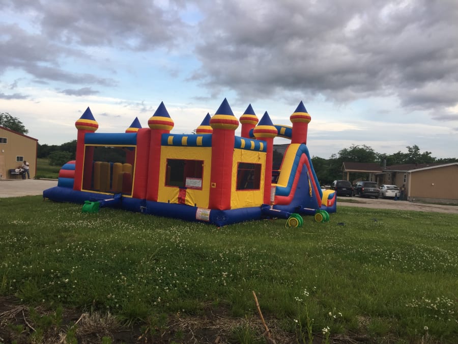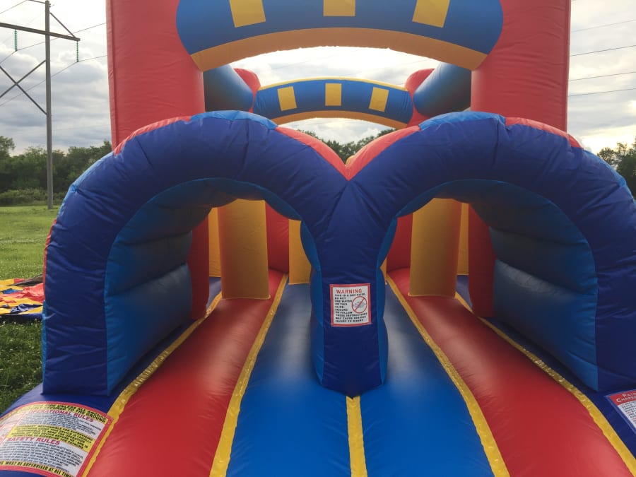 POWER REQUIREMENTS – This inflatable has three, 1 Horse Power blowers and requires THREE dedicated outlets/circuits to operate. Equipment must be located no further than 100 feet from an exterior outlet or generator. MAXIMUM OF ONE 100 foot extension cord per blower – Coba’s Creations provides the extension cord upon set up.