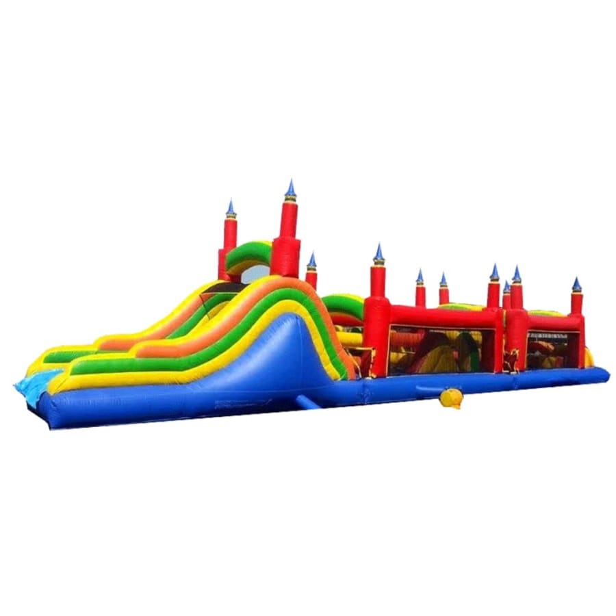 Features: Slide, Obstacle Poles, Tunnel, Horizontal climb through bars, block jumps, staggered crawl tunnels and a climbing pyramid. 60’L X 11.5’W X 15.5’H A 70 x 20 unobstructed space is needed for this unit, with no trees, power lines… overhead. Actual Weight: 720 lbs- 3 pieces each weighing 240 lbs. Capacity: 8 Max Capacity Weight (lbs.): 1000