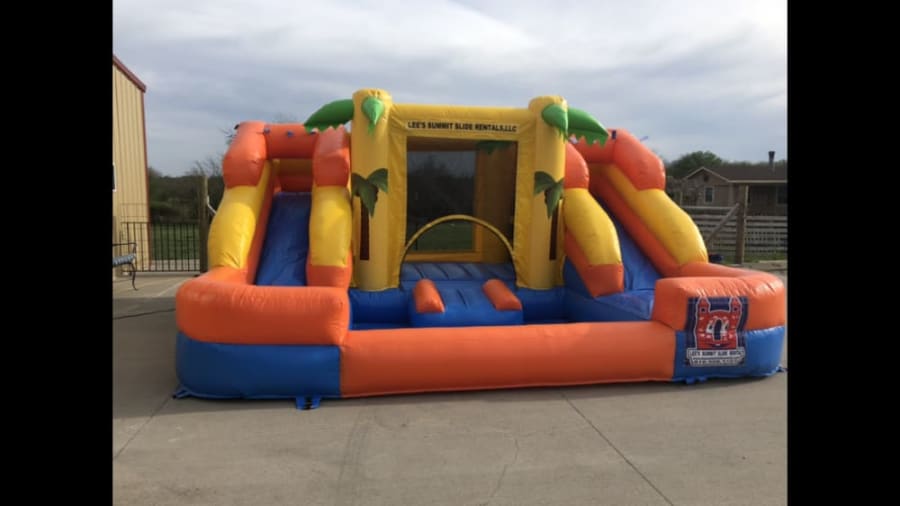 This unit is great for young ones! Many churches and corporate events enjoy its unique dual lane slide. It can service a larger crowd of young ones. It can be used wet or dry.